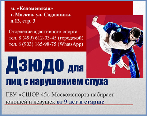 Государственное бюджетное учреждение города Москвы «Спортивная школа олимпийского резерва № 45» Департамента спорта города Москвы (ГБУ «СШОР № 45» Москомспорта) объявляет набор детей и подростков с нарушением слуха для БЕСПЛАТНЫХ...
