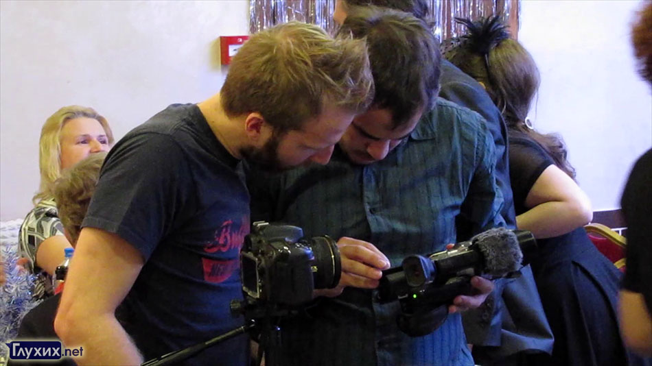 С какими сложностями столкнулись? – Сложностей было несколько. Контингент неслышащих людей сам по себе непростой в силу специфики: если в начале съёмки гости старались внимательно смотреть выступления, то ближе к середине мероприятия было всё труднее привлечь внимание: некоторые разговаривали между собой, не обращая внимания на выступавших артистов. Но я к этому был готов, поэтому спокойно относился к происходящему. Операторы (