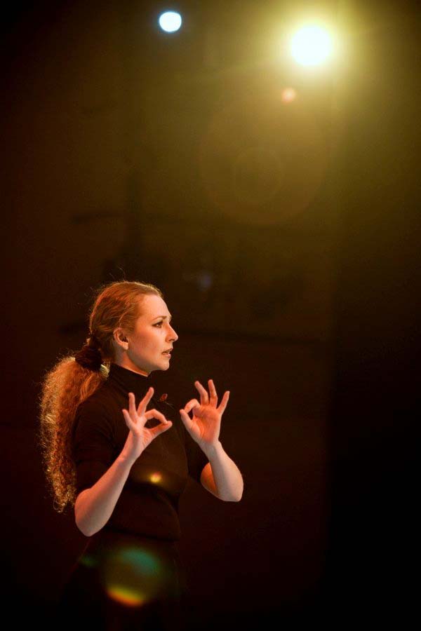 Текст пьесы на жестовом серьезно отличается от оригинального. Вот и сейчас Назаренко предлагает заменить вопрос «Куда ты идешь?» на «Откуда ты падаешь?»