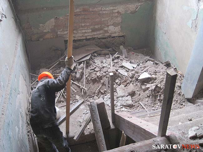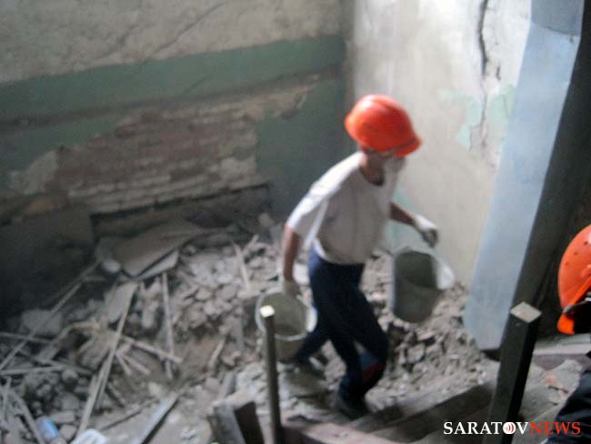 Старое двухэтажное здание 19 века постройки трясло так, что жители приняли обрушения за катаклизм. «Шум был такой, что мы подумали: началось землетрясение. От толчков и вибрации проснулись даже глухонемые. Вся лестничная клетка была завалена горами стройматериалов. Только по счастливой случайности никто не пострадал. Случись авария 30 минутами позже, в 4.00 и я бы сейчас с вами не говорил. В это время я выхожу на работу», – рассказал Saratovnews житель квартиры № 6, Виталий Романенко, проживающий в общежитии со своей глухой матерью.