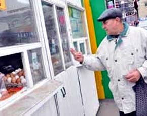 И действительно, подходим к киоскам с мясом и яйцом, и Валерий Иванович жестами показал, что ему необходима куриная грудка за 85 рублей, и 2 десятка яиц. Два раза объяснять не пришлось. Продавщицы уже протягивают требуемый товар и получают вежливый кивок головы: спасибо, мол!