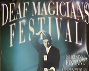 Сегодня, 23 апреля, в столице Финляндии Хельсинки проходит четырнадцатый по счету Всемирный фестиваль глухих иллюзионистов. Приехали на него и россияне. Это Николай Чаушьян, Владимир Руднев, Татьяна Романцова, Владимир Гусев, Максим Шейнин и другие.