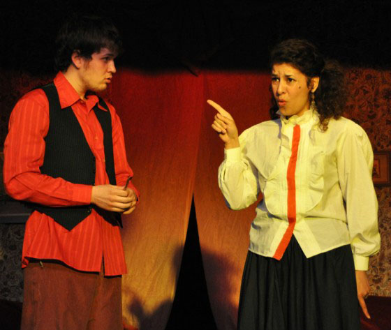 Так было и 28 апреля, когда мы увидели премьеру «Беда от нежного сердца». В старинном русском водевиле В. Соллогуба рассказывается об юном повесе Александре (его играет школьник Александр Киржаев), который влюбляется в каждую девицу, которая встречается ему, и каждой он предлагает руку и сердце. А поскольку юноша – весьма богатый наследник, девицы и их мамаши в полнейшем счастии соглашаются, кроме бедной родственницы хозяйки дома Настасьи (ее играет педагог Раиса Поликарпова), которая понимает, что шансов у нее немного...
