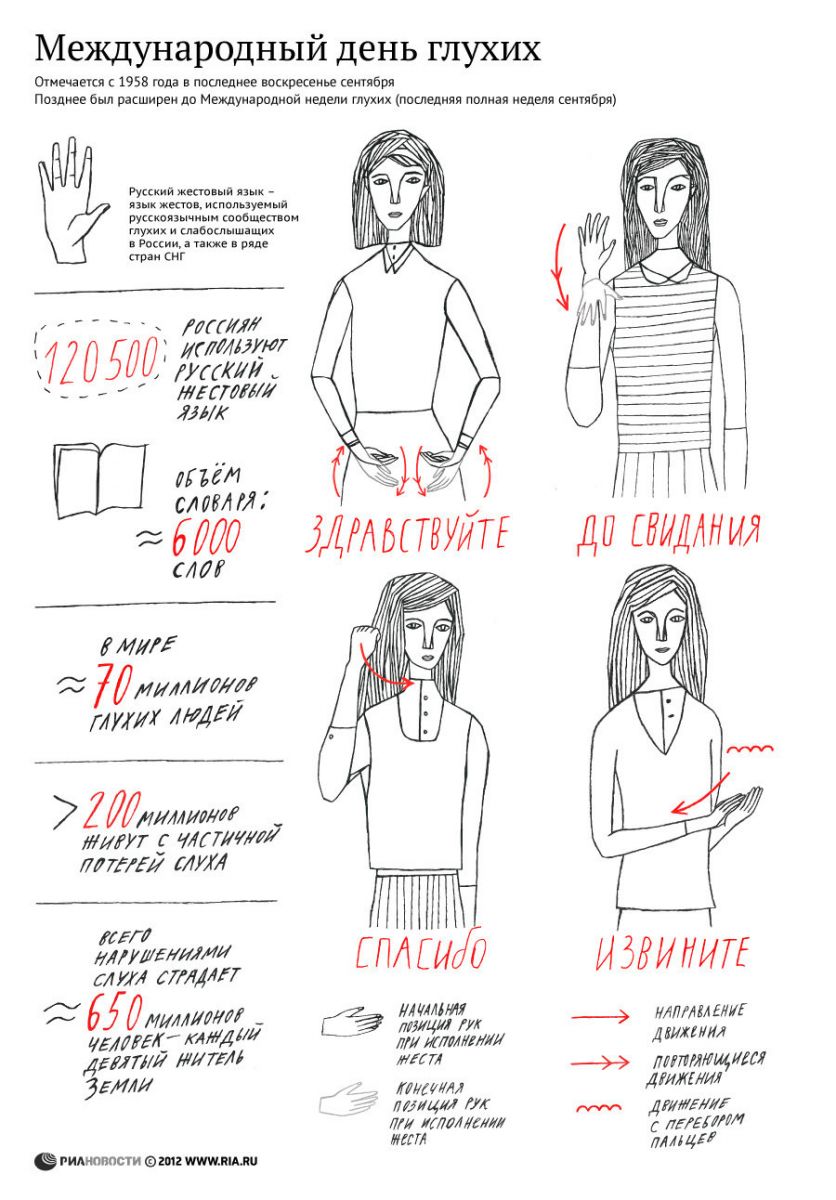 Жесты и цифры В России жестовый язык использует 120,5 тысяч человек. Профессию сурдопереводчика признали полноценной специальностью только в 1992 году, и по ходатайству Центрального правления Всероссийского общества глухих (ВОГ) она была внесена министерством труда РФ в тарифно-квалификационный справочник. По данным ВОГ, в России работает всего 1100 сурдопереводчиков, в то время как необходимо подготовить не менее 7600 специалистов.