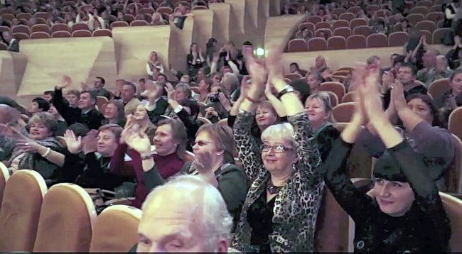 | На фото вверху: так выглядел зрительный зал в первые минуты юбилейного торжества. Практически в каждом ряду можно было насчитать свободные места. На фото внизу: так выглядел зрительный зал после перерыва. Считать пустые кресла нет смысла... (фото прислал Tornado) |