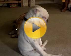 Любимец семьи Джемин Боул стал настоящей звездой Интернета – полное отсутствие слуха не мешает английскому бульдогу резвиться под аккорды акустической гитары.
