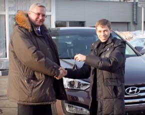 Андрей Мельников поздравил очередного участника «жилищной программы» с приобретением дорогостоящего автомобиля.