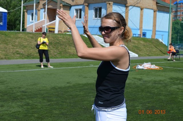 Из-за жары опять был объявлен перерыв, всех мучила жажда. Ведущие Света Белобровкина и Ольга Зубаровская тем временем, воспользовавщись небольшой паузой, «зажигали» зрителей наводящими вопросами на спортивную тематику.