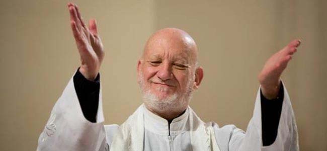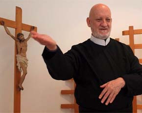 В Йобурге, на своей родине, католический батюшка из Лондона собирался читать проповеди, делает Аксельрод это при помощи логопеда-переводчика.