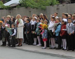 На линейке первоклашки читали стихи. Были они, конечно, не такие мелодичные, как в обычной школе: где-то звук вылетит, где-то целое слово, но зато каждый получил настоящий шквал аплодисментов.
