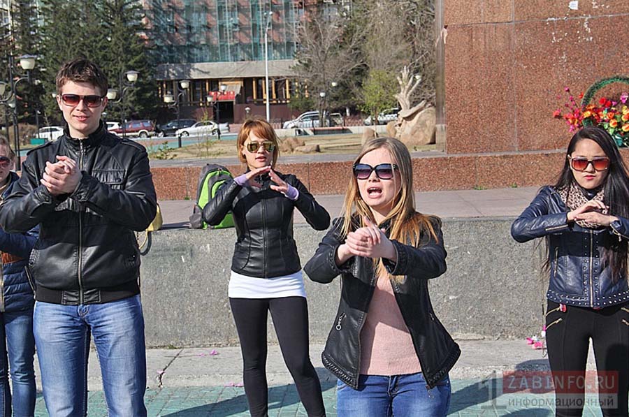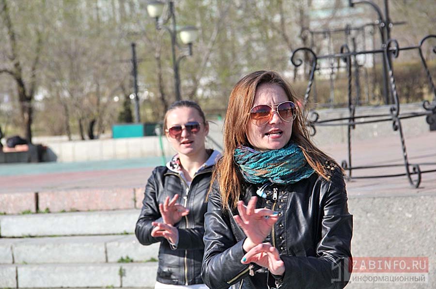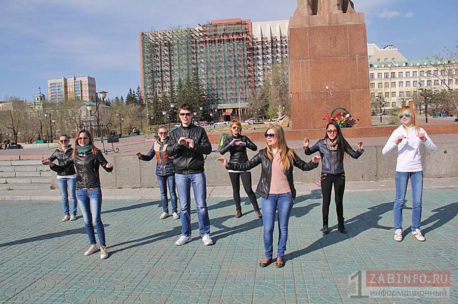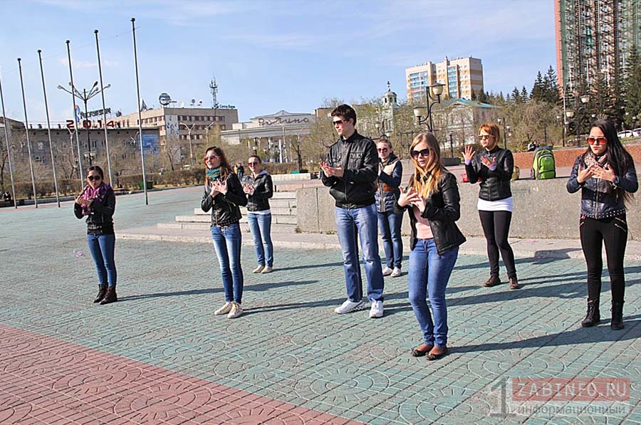 4 мая в Чите на площади Ленина около 15 слабослышащих горожан организовали флешмоб и спели песню при помощи жестов.