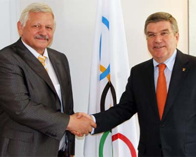 Пользуясь случаем, Валерий Рухледев проинформировал г-на Баха о работе по подготовке и организации XVIII зимних Сурдлимпийских Игр, намеченных на апрель 2015 года в городе Ханты-Мансийске (Россия). В ходе обмена мнениями стороны согласились с тем, что МОК и МКСГ преследуют одни и те же цели: популяризировать качественный и честный спорт, улучшать условия спортивных соревнований и мероприятий, а также создавать необходимые условия для развития спорта среди молодежи и детей.