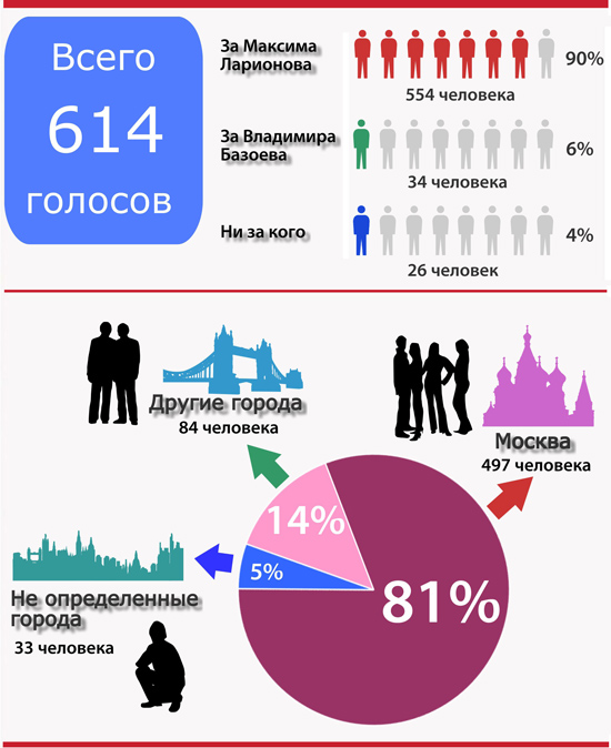 На сайтах Deaf-содружества (Глухих.нет, DeafNet, сайт Максима Ларионова, соцсети и др.) был проведен опрос: «За кого бы Вы проголосовали 17 апреля 2015 года, если бы у Вас была такая возможность?»