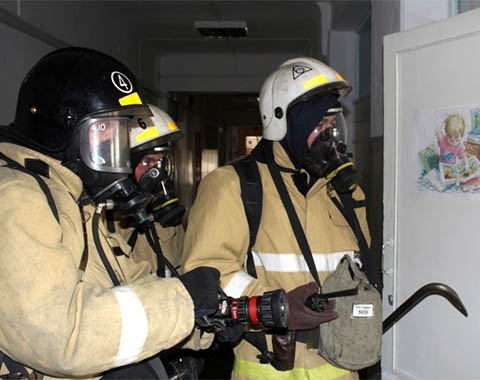 Пока огнеборцы искали в трехэтажном здании оставшихся людей, на фасаде развернулся штаб пожаротушения, который координировал действия пожарных. Нашедшихся эвакуировали из школы, предварительно снабдив их специальными устройствами, защищающими органы дыхания.