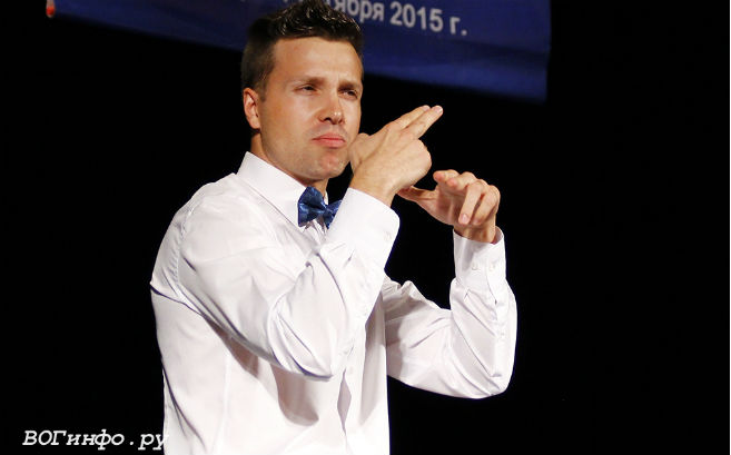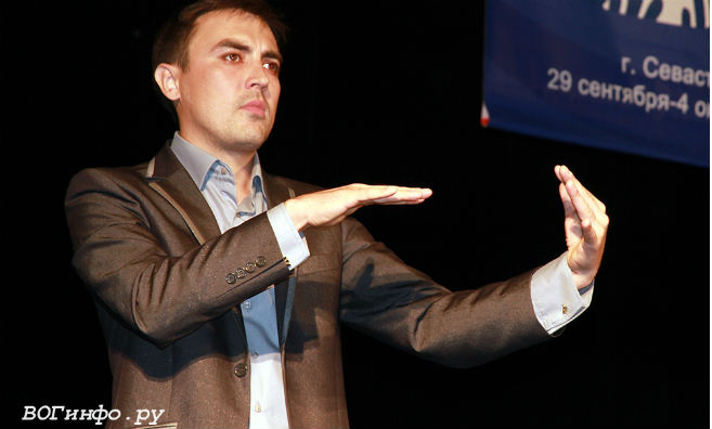А в начале концерта собравшихся в театре приветствовал Николай Чаушьян, вице-президент Всероссийского общества глухих (ВОГ организовало и провело этот фестиваль, оргкомитет возглавлял президент Общества Валерий Рухледев).