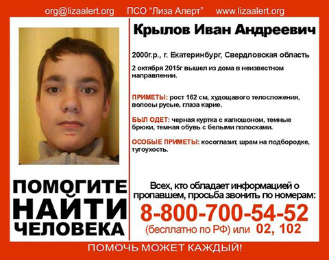 В Екатеринбурге пропал пятнадцатилетний слабослышащий подросток.