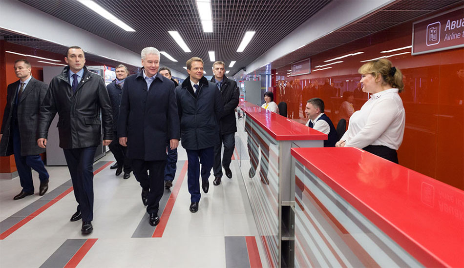Мэр Москвы Сергей Собянин ознакомился с работой нового терминала «Аэроэкспресс, создание которого полностью соответствует планам города по формированию комфортных транспортно-пересадочных узлов для пассажиров общественного транспорта.