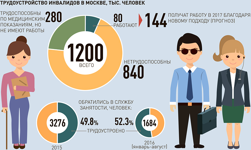 – За 2015 год в нашу службу занятости населения обратились 3,3 тыс. москвичей с инвалидностью. Трудоустроены были 1,6 тысячи. За восемь месяцев 2016-го пришли 1,7 тысячи, получили работу 900. То есть помочь удается каждому второму. Мы же ставим цель – помочь каждому. Даже тем, кто еще не решился обратиться за помощью в трудоустройстве.