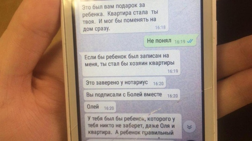 — Сейчас вообще смешно. Женя пишет, что этот ребенок — не Олин. Мол, его родила ее подруга, а у моей дочки родился больной, и новорожденных поменяли. А еще присылает ультиматумы: или ребенок — или квартира. Подливают под двери то бензин, то керосин. У дочки пропало грудное молоко, она каждый день плачет.