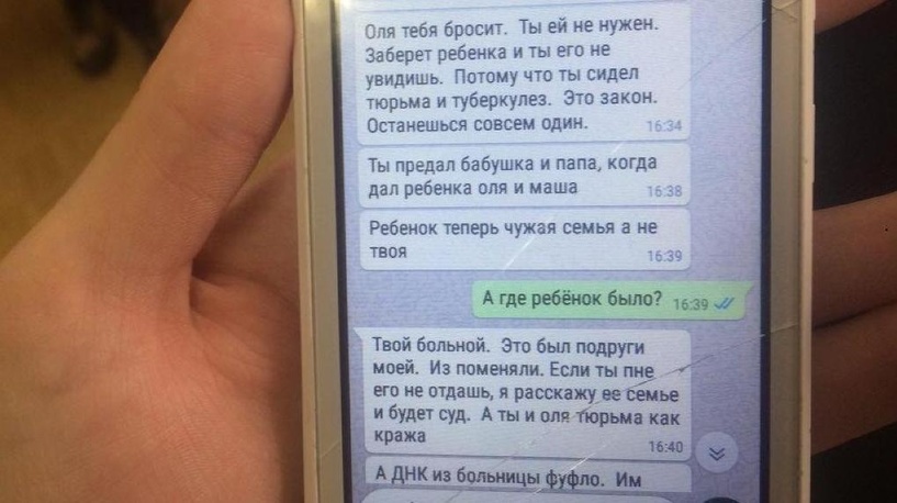 Сейчас Ольга с ребенком вернулись домой, однако неприятности на этом не закончились. Теперь родственники выгоняют их из квартиры (выяснилось, что еще до рождения малыша Виктор подписал отказ от своей доли в квартире), пишут сообщения с угрозами, что посадят Виктора в тюрьму, а Ольгу лишат родительских прав.