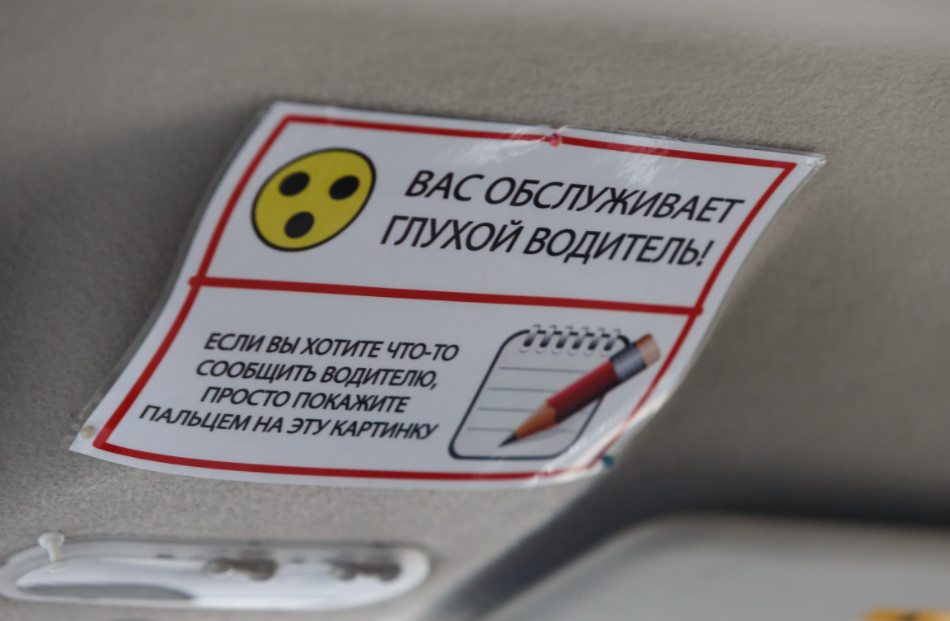 По его словам, с клиентами ни разу не было непонимания — здесь у каждого такого автомобилиста в машине табличка «Вас обслуживает глухой водитель». Если пассажиру есть что сказать, он показывает на нее, водитель достает блокнот, и пассажир пишет, допустим, что надо заехать в магазин по