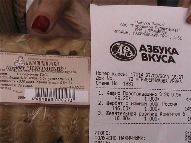 Щербет в «Азбуке вкуса» просрочен был ещё в июле.
