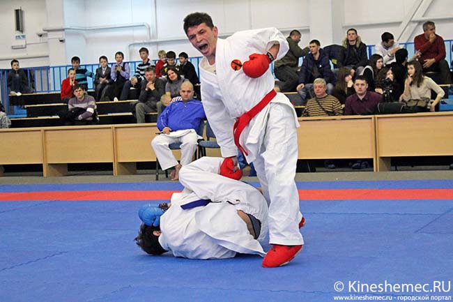 В течение 8 часов соревнования по двум видам каратэ – ката и кумитэ проходили в спортивном комплексе детско-юношеской спортивной школы № 9. Ката – это комплекс упражнений, бой с воображаемым противником. Двое спортсменов по очереди выходят и демонстрируют пяти судьям свою технику. Кто лучше и четче ее выполнит, тот и победитель. Среди мужчин не было равных 52-летнему москвичу Алексею Алексееву. Он – заслуженный мастер спорта, 8-кратный чемпион России, серебряный призер Чемпионата мира в Венесуэле по кумитэ (поединок двух соперников).