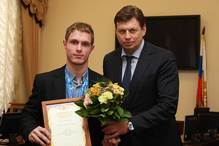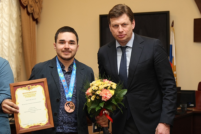 Николай Гуляев наградил спортсменов почетными грамотами Москомспорта и пожелал дальнейших успехов в их спортивной карьере.