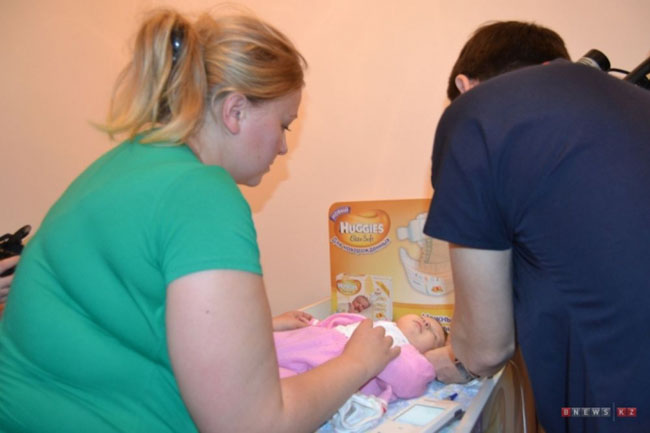 На профилактический прием к сурдологам приехала из района М. Жумабаева Анастасия Козлова с двухмесячной Софией.