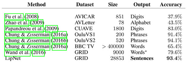 достигает 52,3 процентов). Тем не менее, сами авторы работы отмечают, что условия проверки работы LipNet были весьма «тепличными», при распознавании произвольной человеческой речи результат может быть значительно хуже.