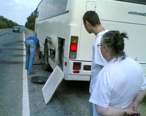сломался прямо на дороге. Пассажиры учуяли неприятный и горелый запах в салоне, и водителю пришлось остановить транспорт. Как выяснилось позже, проблема заключалась в заднем колесе автобуса: водители справились с технической неполадкой за полчаса, и автобусы снова продолжили путь.