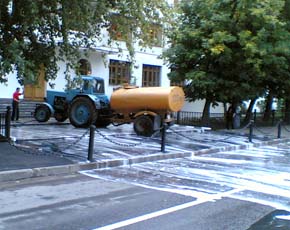 асфальт мыли с пеной. В общем, вылезли всё, что могли. На перекрестках впервые появились регулировщики, а по самой набережной, где и расположена школа, проезд перекрыли.