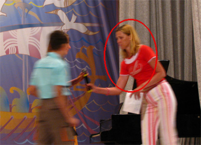 Группу «глухонемых» (обратите внимание, как назвали глухих детей) сопровождала студентка, которая вначале практически не знала жестовый язык. Студентка была очень приятной, внимательной и хорошей сопровождающей. Но она по профессии – не сурдопереводчик. Девушка сама объяснила, что прошла начальные курсы жестового языка, изучив его лишь несколько часов и у неё долгое время не было никакой практики. Глухие отдыхающие сами, в процессе отдыха, учили студентку жестам (что само по себе хорошо: к концу отдыха она стала лучше и увереннее общаться жестами, хотя до сурдопереводчика ей было ещё далеко).