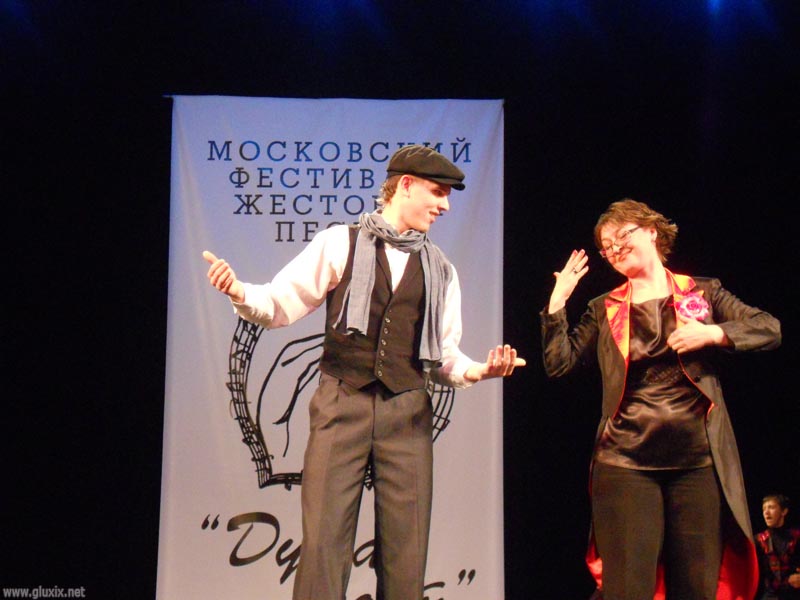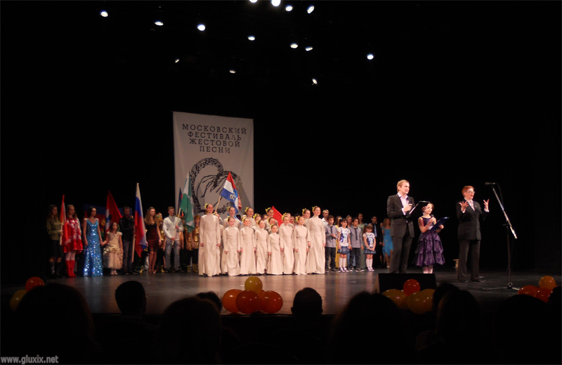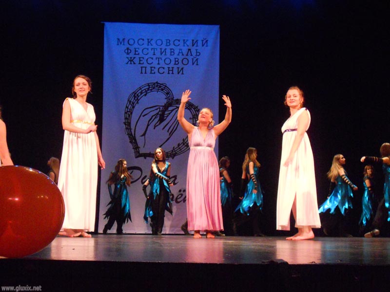 третий Московский (международный) фестиваль жестовой песни «Душа поёт». На этот раз праздник прошёл в Московском государственном театре Эстрады. Данное мероприятие состоялось благодаря финансовой поддержке Департамента социальной защиты населения города Москвы. К сожалению, в этом году организаторам не удалось наладить работу с прессой, поэтому «Глухих.нет» представляет своим читателям лишь небольшой фотоотчёт.