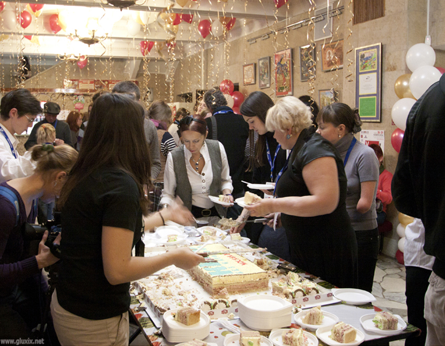 На открытие фестиваля собралось много народу Торт огромный прикатили и все желающие могли угощаться им