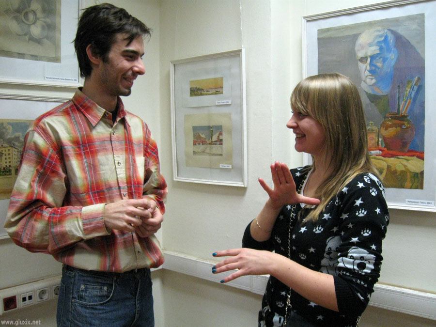 Женя: Когда я попала на эту встречу по приглашению моих друзей, меня больше всех поразили слышащие люди, которые так хорошо осваивают жестовой язык, что я вначале подумала, что эти люди неслышащие! И мне было приятно на них смотреть как они относятся к людям с нарушением слуха, и у них нет неприязни к ним, а, скорее всего наоборот, помогают им, осознавая, что им непросто. И еще мне понравилось, как там придумали штрафовать за каждое сказанное слово голосом, ведь неслышащим людям тоже хочется «слышать» и понять о чем там говорят, и с другой стороны слышащим полезно общаться жестами, осваивая новые жесты. Было очень интересно наблюдать на слышащих, участвующих на конкурсе. Меня радует, что есть слышащие, которые интересуются жестовым языком.