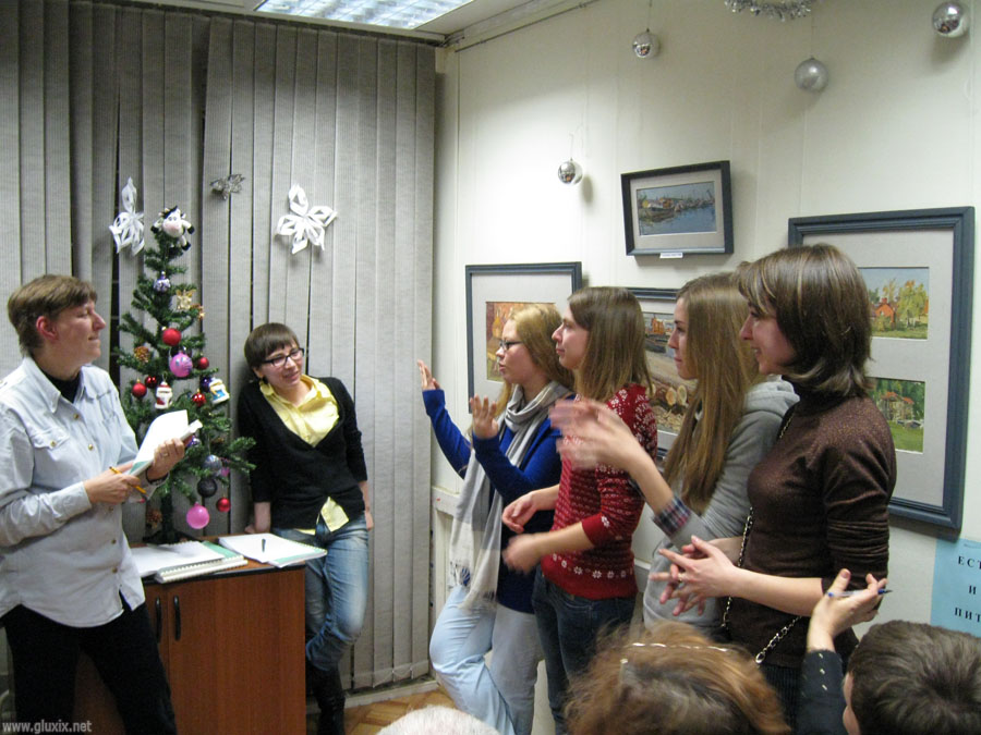 Сначала была встреча, знакомства, отведывание вкусностей, затем были проведены конкурсы, любимые среди глухих. Среди них были такие как «Ассоциации», «Испорченный телефон», «Пойми меня». Но вся соль в том, что все игроки были слышащими, осваивающие ЖЯ. Было очень интересно наблюдать за ними: уж очень старались, не произнесся ни слова вслух. Было видно, как им было тяжело. И потом вечер закончился «беспроигрышной лотереей».