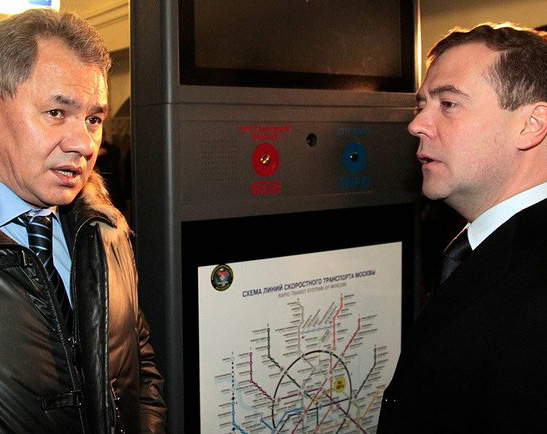 Сергей Шойгу также был замечен в метро – судя по всему, он лично контролировал подготовку к визиту главы государства. Впрочем, после того как Медведев покинул метро, система работать перестала.