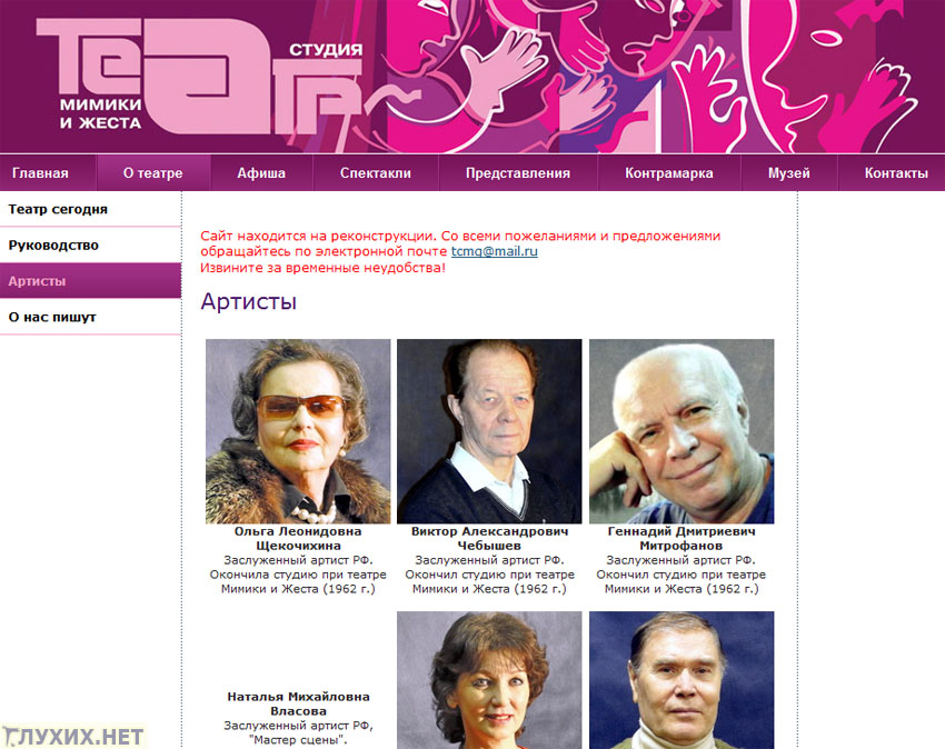 интернет-сайт для людей с нарушением слуха (и не только для них). Театр мимики и жеста обзавёлся собственным сайтом, который располагается по адресу: