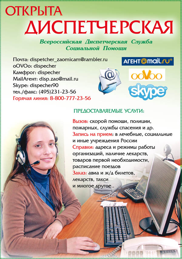 Уникальна она потому, что является всероссийской, и любой желающий из российской глубинки может обратиться в Диспетчерскую службу и попросить помощи, причём