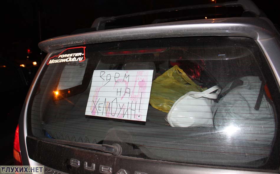 Даже на машину прилепили табличку «Едем на Хэллоуин!». Настроение у всех было превосходное. Наконец-то колонна машин тронулась. Наш шабаш – в коттедже, что в г. Королёв. Туда и направились.