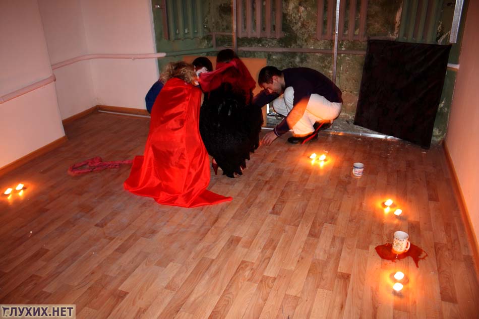 Склеп. В полной темноте, с одной свечой на всю команду, искали спрятанные везде слова.
