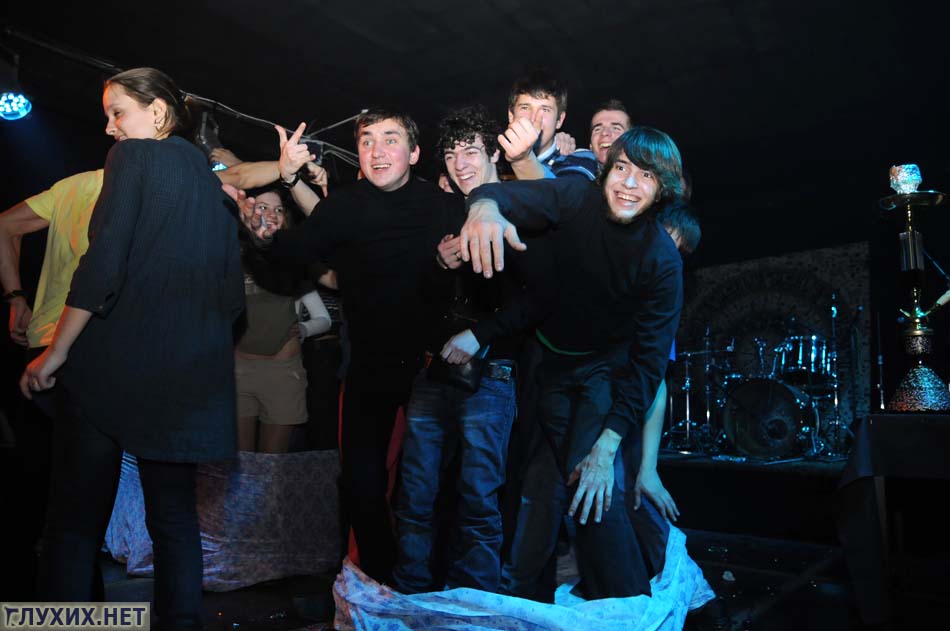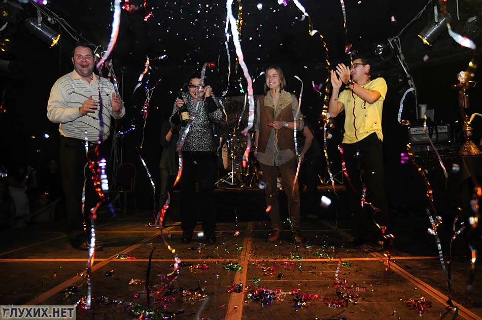 В ночь дискотеки свои дни рождения праздновали несколько гостей клуба. Организаторы вечеринки поздравили именинников на сцене, вручив им шампанское и детские соски с пожеланием «Всегда оставаться молодыми».