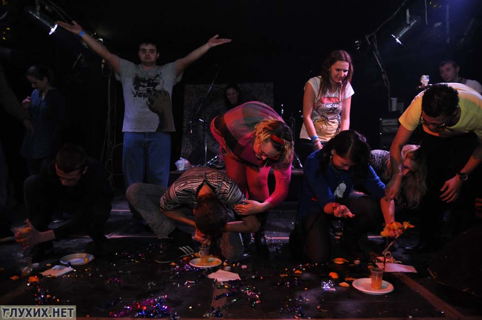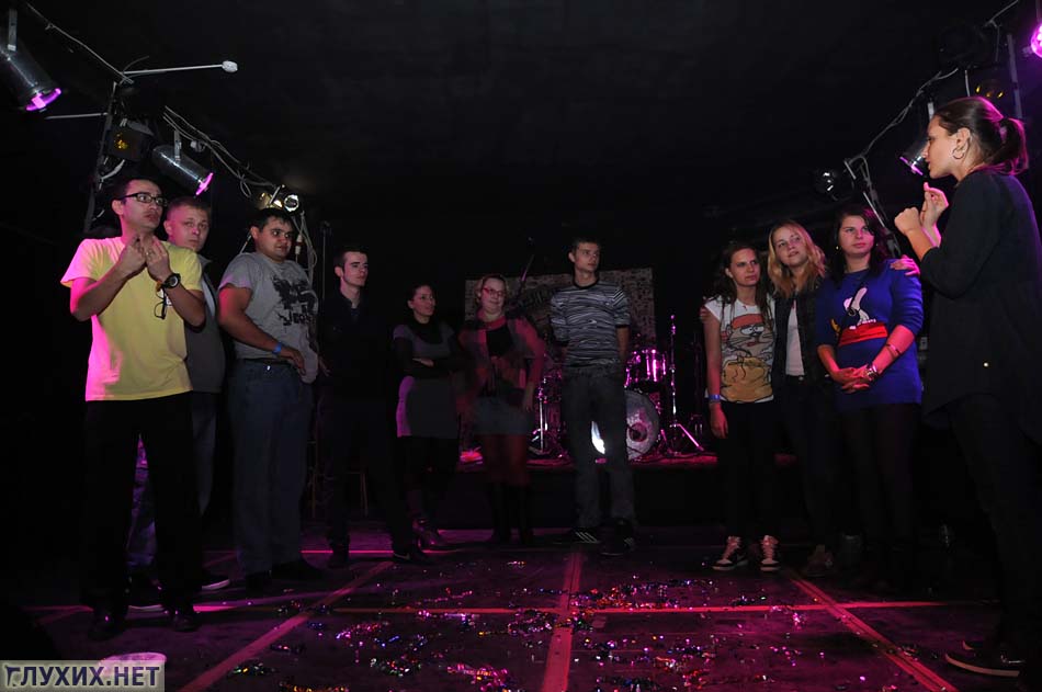 В следующем конкурсе участвовал почти весь танцпол, каждый получил листок, на котором было написано слово, и задача была быстро найти человека с таким же словом.