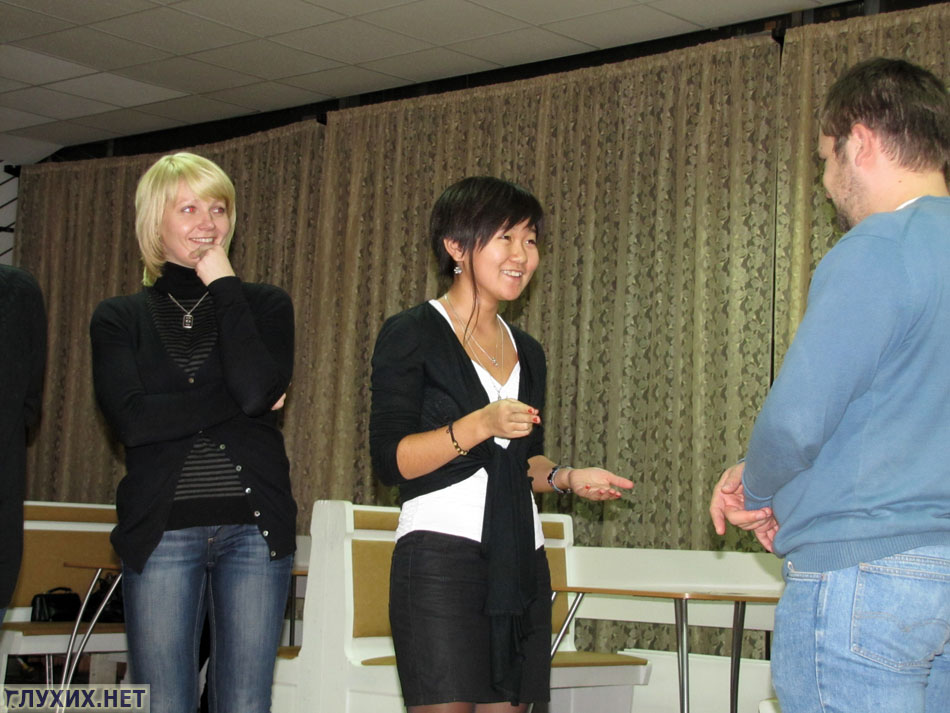 Участники игры разбились на две команды – «За нами победа» и «Зайцы». Преподаватели жестового языка давали для команд различные задания: например, нужно было отгадать жесты или точно воспроизвести сюжет на жестовом языке и передать его соседу. Жюри состояло из двух уважаемых в Обществе глухих людей –