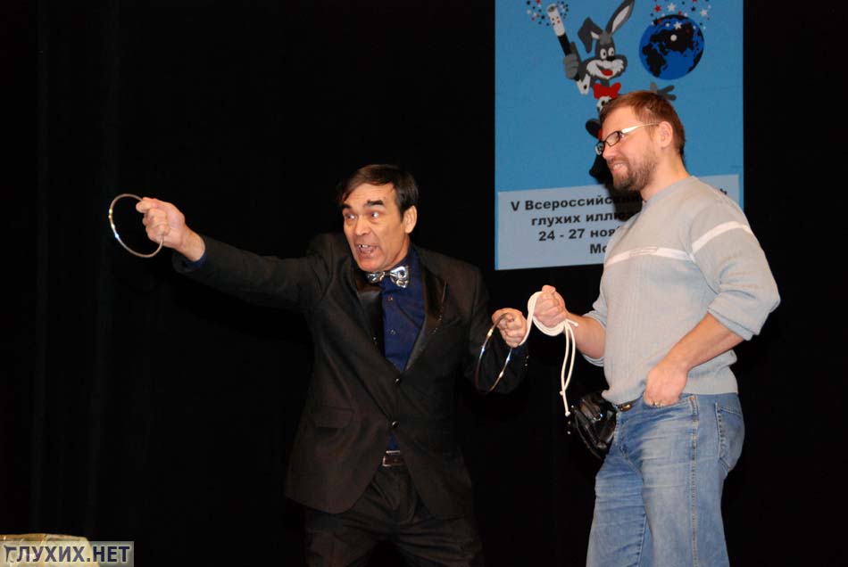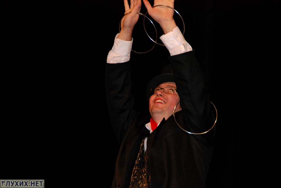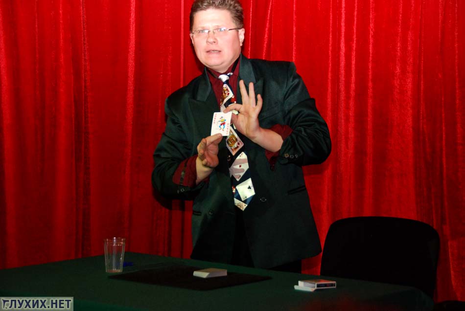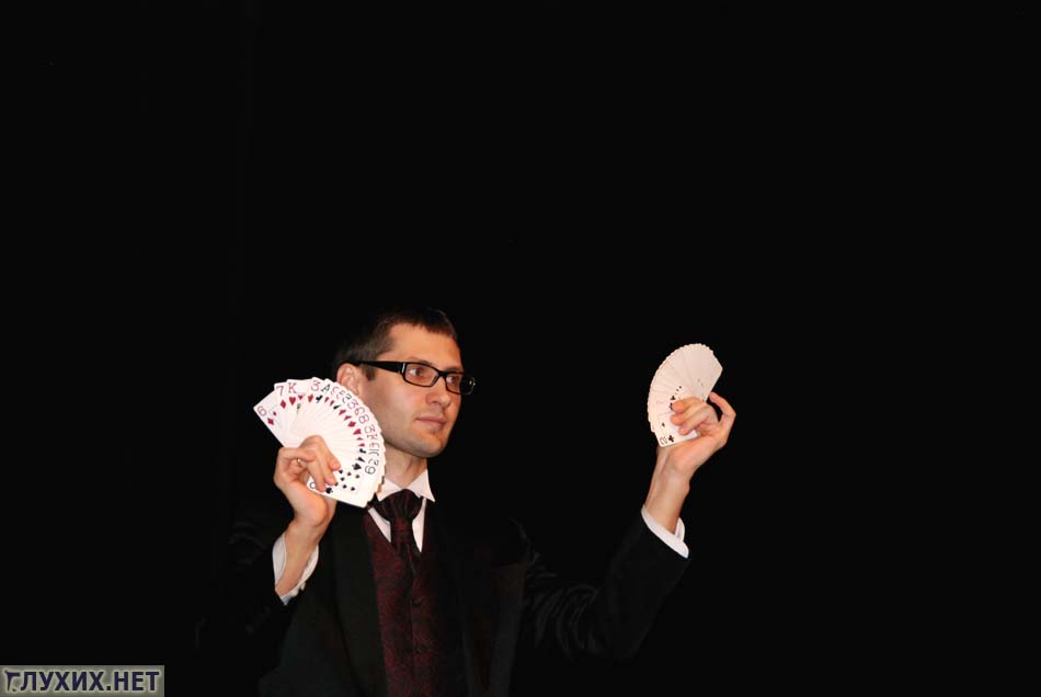 Еремеев старался не теряться на фоне маститых глухих и слышащих иллюзионистов.