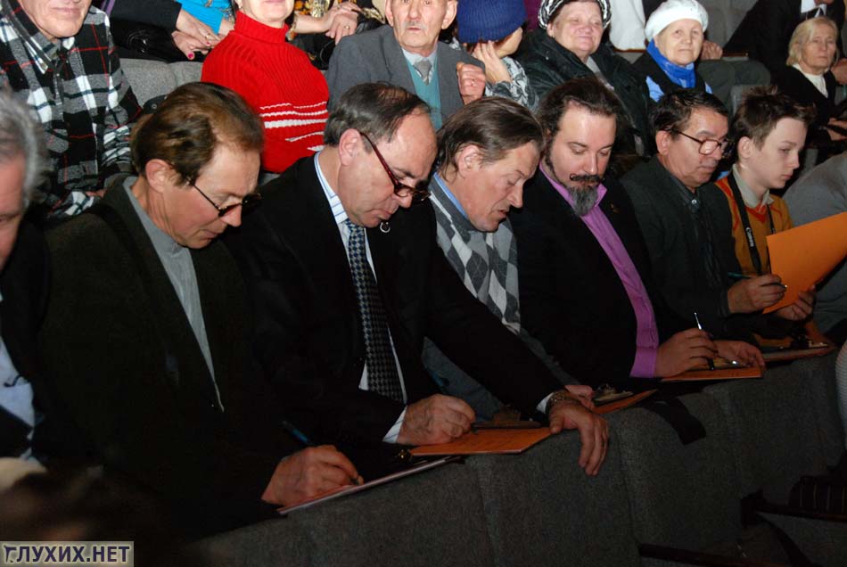 А судьи кто? Слева направо: слышащие профессионалы по надувательству: Сергей Волков, Владимир Руднев (президент Российской ассоциации глухих