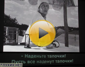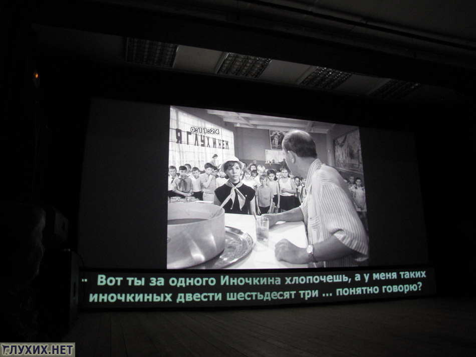 Для инвалидов по слуху в кинотеатре предусмотрели субтитры с комментариями (какая именно музыка звучит, кто чихнул, и кто кому сказал).