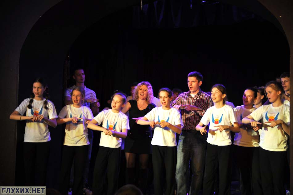 2. Для меня совсем не ясна позиция,что пора приземлиться! Быть рядом и выступать для глухих!!! Все кругом кричат об интеграции! Для вас это не так? У вас своё закрытое общество, где подобные общаются себе подобным? Главная задача,коллекти ва интегрировать детей и молодёжь в общество! А выступления со звёздами поднимает соц.планку каждого,даёт реальную возможность понять и ощутить себя ничуть не хуже во всём обществе!! Ангелы всегда будут летать!! Очень жаль, что Вы пишите то,о чём совсем не знаете! Никто из Вас не видел ежедневные репетиции, пот , слёзы! Всё гораздо сложнее,чем вы думаете! Сидеть за монитором писать свои мысли ,гораздо легче,чем создать ,поддерживать и развивать!