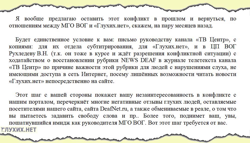 конфликтной ситуации интернет-портала «Глухих.нет» с Московской городской организацией Всероссийского общества глухих. Напомним, после размещения порталом «